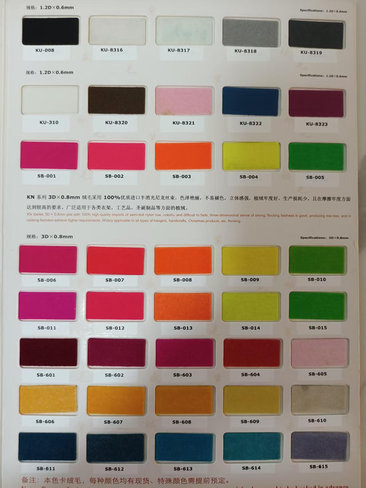 各种规格的静电绒毛
